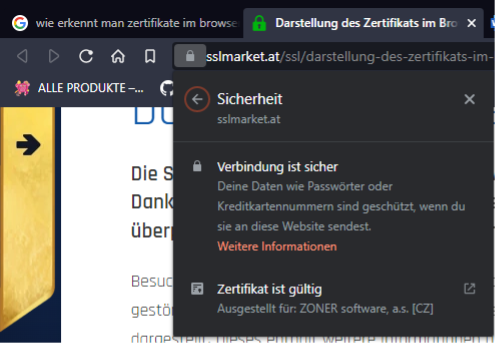 Wie kann man das Zertifikat beim Surfen erkennen?
